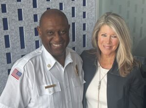 Lafayette Fire Chief Robert Benoit and Jan Swift at taping of Discover Lafayette